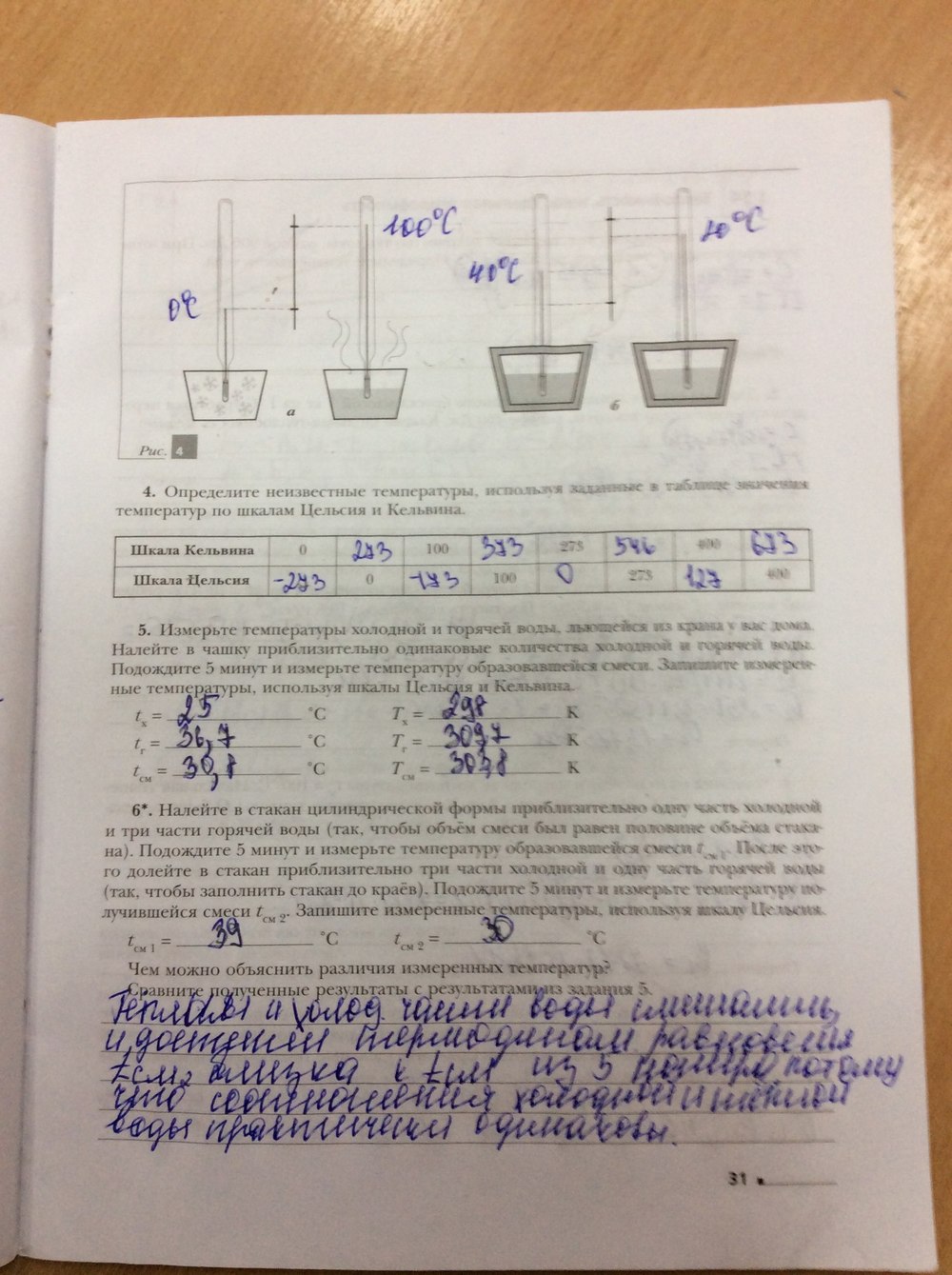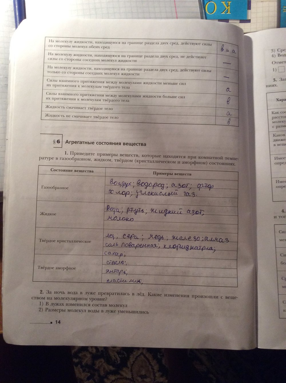 На страницах этого пособия школьники найдут решения таких типов упражнений: приведите примеры веществ, которые находятся при комнатной температуре в газообразном, жидком и твердом состояниях; заполните таблицу свойств вещества, находящегося в разных агрегатных состояниях, и многие другие.