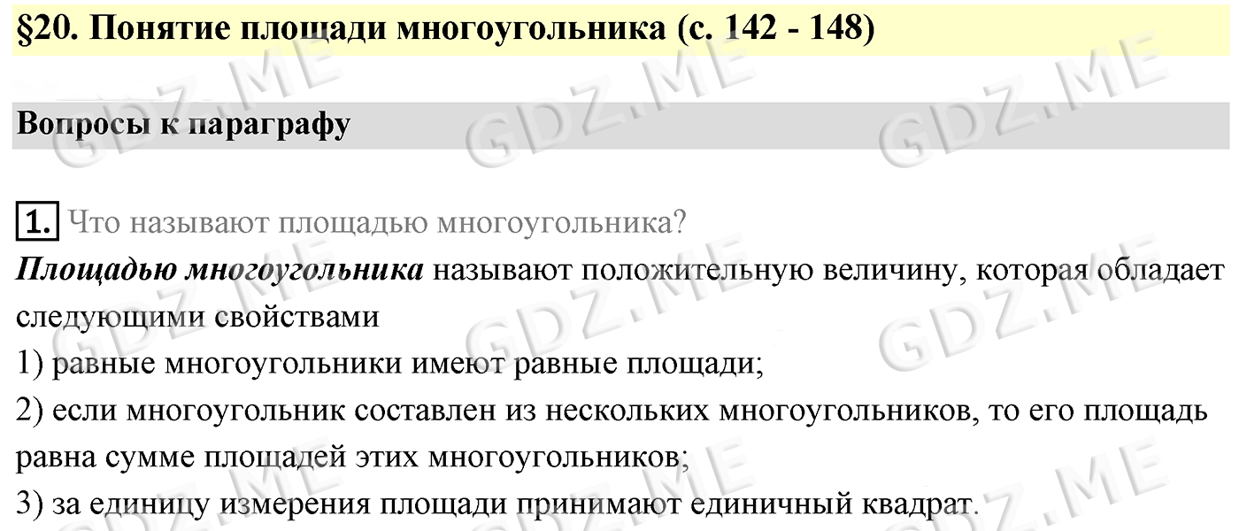 Подробный вариант решения из решебника (ГДЗ): Номер номер 1 (4 глава. Номера с 641 по 860 (Многоугольники. Площадь многоугольника. Страницы 137 - 177). Вопросы к §20. Cтраница 145) по предмету Геометрия, за 8 класс, авторы учебника Мерзляк, Полонский, Якир.