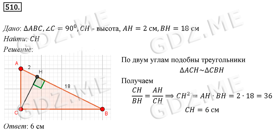 Подробный вариант решения из решебника (ГДЗ): Номер номер 510 (3 глава. Номера с 510 по 640 (Решение прямоугольных треугольников. Страницы 111 - 136.). Вопросы к §15. Cтраница 112) по предмету Геометрия, за 8 класс, авторы учебника Мерзляк, Полонский, Якир.