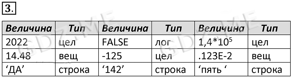 Подробный вариант решения из решебника (ГДЗ): Номер номер 3 (НОМЕРА РЕШЕНИЙ. §3.3. Объекты алгоритмов. Страницы 100-102. Вопросы и задания) по предмету 8 класс, за , авторы учебника Босова.