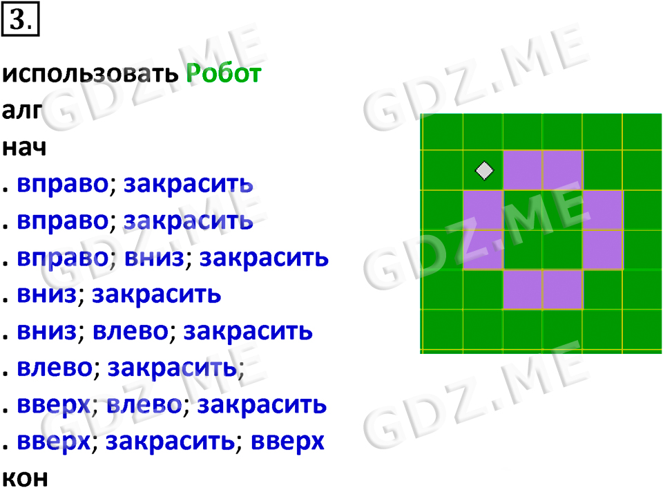 Подробный вариант решения из решебника (ГДЗ): Номер номер 3 (НОМЕРА РЕШЕНИЙ. §3.4. Алгоритмическая конструкция «следование». Линейные алгоритмы. Страницы 109-110. Вопросы и задания) по предмету 8 класс, за , авторы учебника Босова.