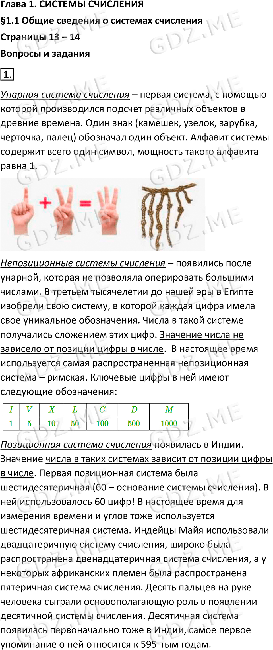 §1.1. Общие сведения о системах счисления. Страницы 13-14. Вопросы и задания: