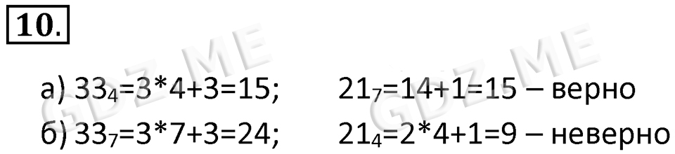 Подробный вариант решения из решебника (ГДЗ): Номер номер 10 (НОМЕРА РЕШЕНИЙ. §1.1. Общие сведения о системах счисления. Страницы 13-14. Вопросы и задания) по предмету 8 класс, за , авторы учебника Босова.
