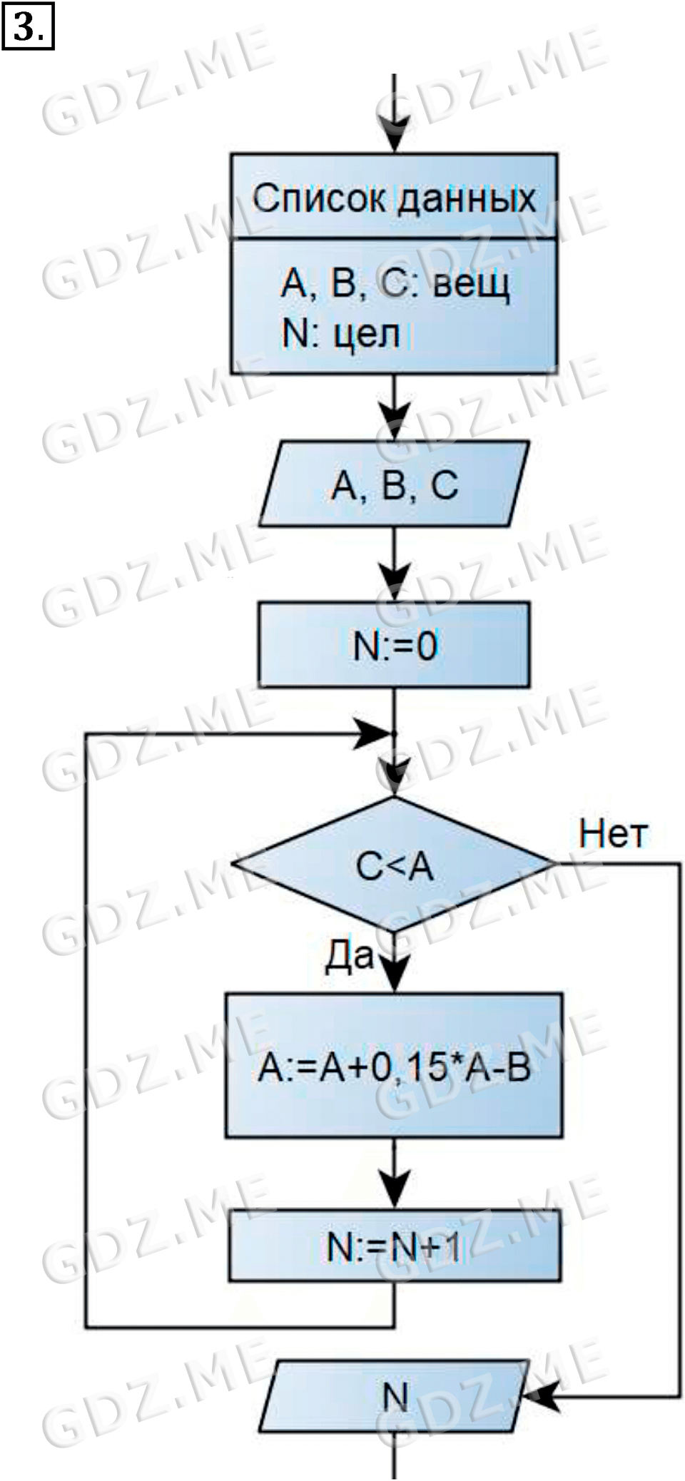 Подробный вариант решения из решебника (ГДЗ): Номер номер 3 (НОМЕРА РЕШЕНИЙ. §3.6. Алгоритмическая конструкция «повторение». Циклические алгоритмы. Страницы 133-136. Вопросы и задания) по предмету 8 класс, за , авторы учебника Босова.