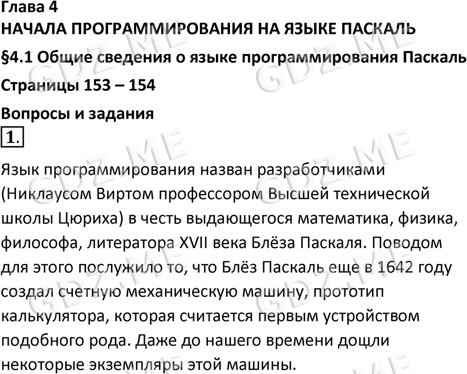 1 2 3 4 5 6 7.1 8 9 10 11 12 13 14 15 16 17 137-145.test.1§4.1. Общие сведения о языке программирования Паскаль. Страницы 153-154. Вопросы и задания: