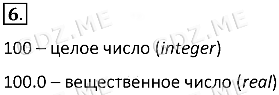 Подробный вариант решения из решебника (ГДЗ): Номер номер 6 (НОМЕРА РЕШЕНИЙ. §4.1. Общие сведения о языке программирования Паскаль. Страницы 153-154. Вопросы и задания) по предмету 8 класс, за , авторы учебника Босова.
