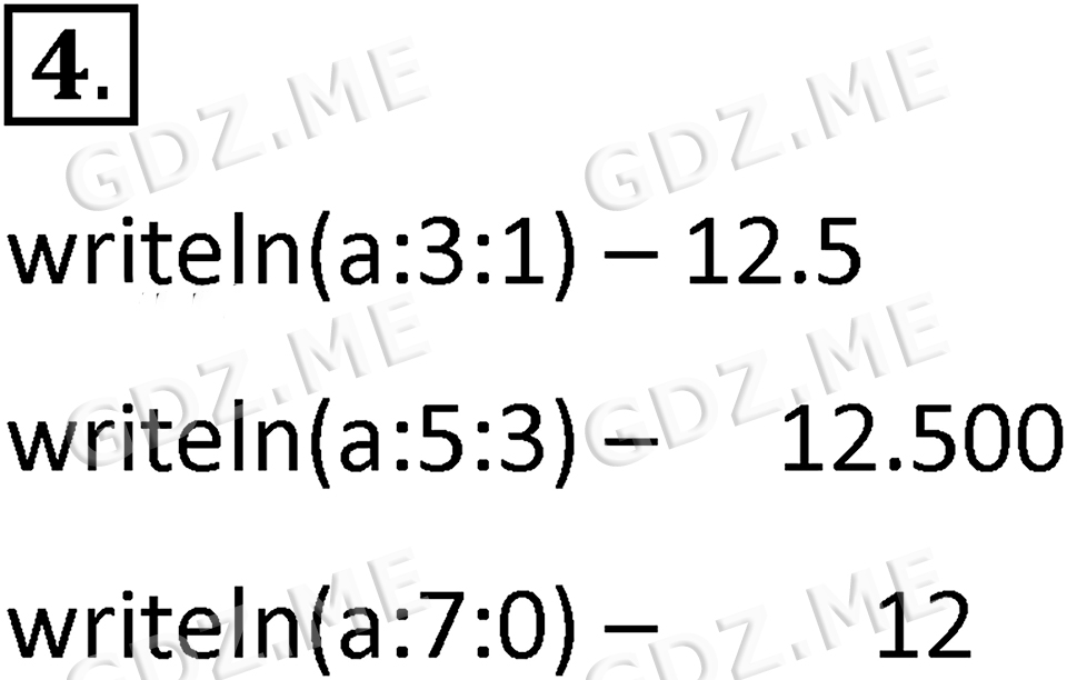 Подробный вариант решения из решебника (ГДЗ): Номер номер 4 (НОМЕРА РЕШЕНИЙ. §4.2. Организация ввода и вывода данных. Страницы 160-161. Вопросы и задания) по предмету 8 класс, за , авторы учебника Босова.