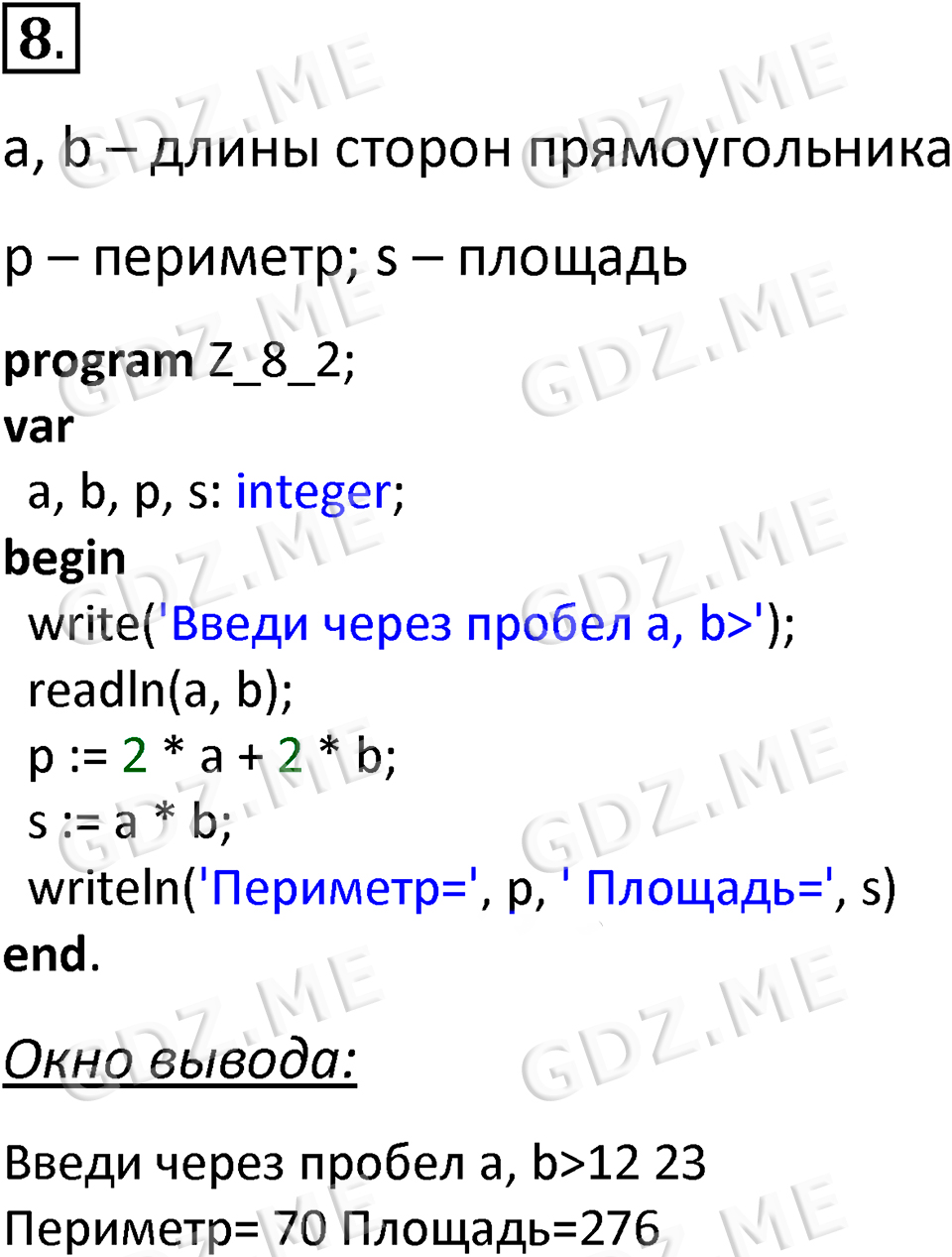 Подробный вариант решения из решебника (ГДЗ): Номер номер 8 (НОМЕРА РЕШЕНИЙ. §4.2. Организация ввода и вывода данных. Страницы 160-161. Вопросы и задания) по предмету 8 класс, за , авторы учебника Босова.