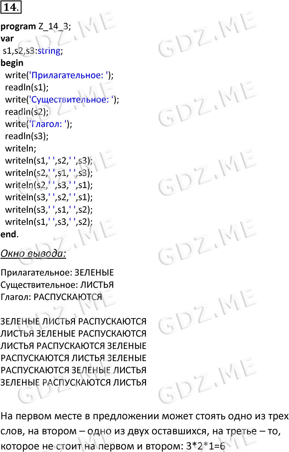 Подробный вариант решения из решебника (ГДЗ): Номер номер 14 (НОМЕРА РЕШЕНИЙ. §4.3. Программирование линейных алгоритмов. Страницы 168-173. Вопросы и задания) по предмету 8 класс, за , авторы учебника Босова.