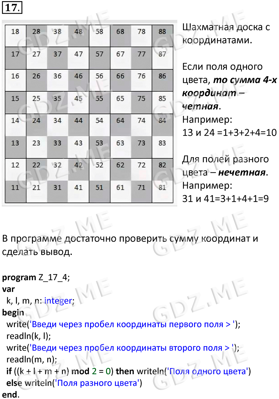 Подробный вариант решения из решебника (ГДЗ): Номер номер 17 (НОМЕРА РЕШЕНИЙ. §4.4. Программирование разветвляющихся алгоритмов. Страницы 177-181. Вопросы и задания) по предмету 8 класс, за , авторы учебника Босова.