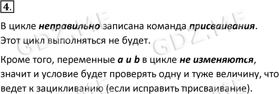 Подробный вариант решения из решебника (ГДЗ): Номер номер 4 (НОМЕРА РЕШЕНИЙ. §4.4. Программирование циклических алгоритмов. Страницы 191-195. Вопросы и задания) по предмету 8 класс, за , авторы учебника Босова.