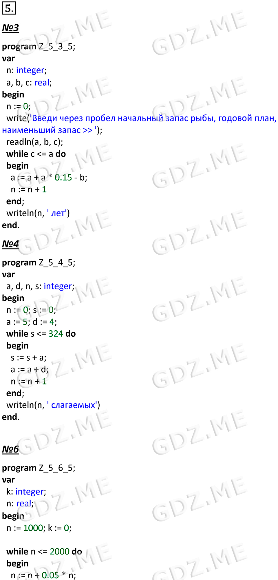 Подробный вариант решения из решебника (ГДЗ): Номер номер 5.1 (НОМЕРА РЕШЕНИЙ. §4.4. Программирование циклических алгоритмов. Страницы 191-195. Вопросы и задания) по предмету 8 класс, за , авторы учебника Босова.