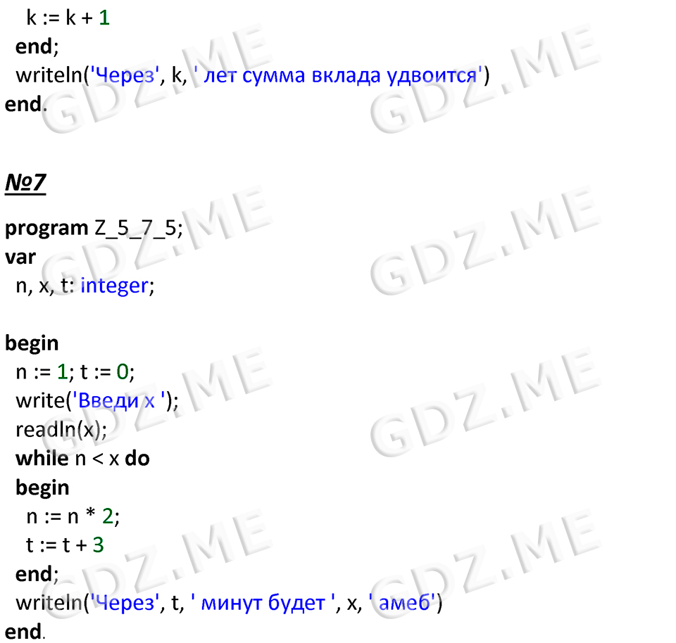 Подробный вариант решения из решебника (ГДЗ): Номер номер 5.2 (НОМЕРА РЕШЕНИЙ. §4.4. Программирование циклических алгоритмов. Страницы 191-195. Вопросы и задания) по предмету 8 класс, за , авторы учебника Босова.