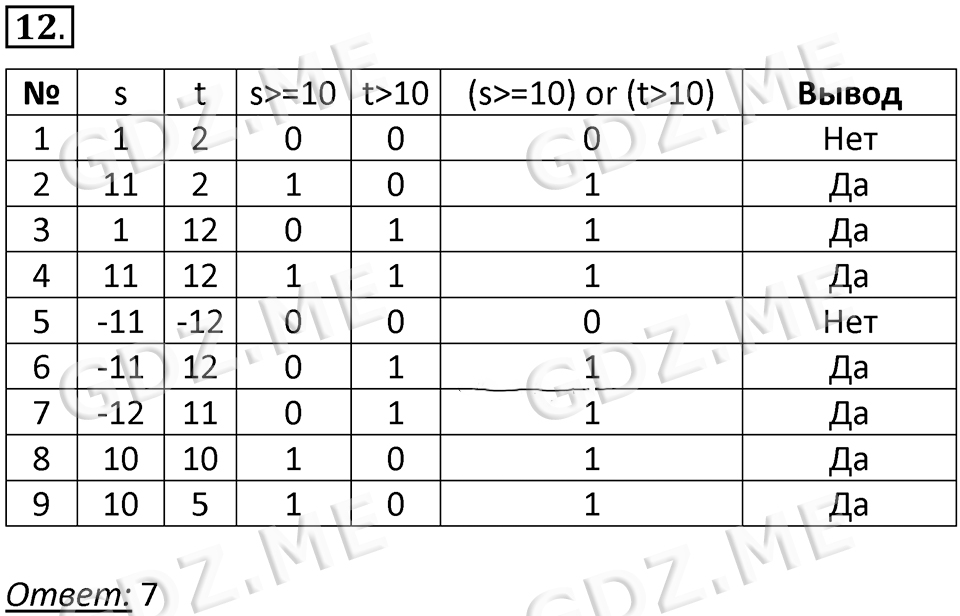 Подробный вариант решения из решебника (ГДЗ): Номер номер 12 (НОМЕРА РЕШЕНИЙ. §5.4. Программирование разветвляющихся алгоритмов. Страницы 238-242. Вопросы и задания) по предмету 8 класс, за , авторы учебника Босова.