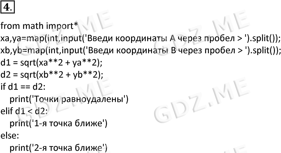 Подробный вариант решения из решебника (ГДЗ): Номер номер 4 (НОМЕРА РЕШЕНИЙ. §5.4. Программирование разветвляющихся алгоритмов. Страницы 238-242. Вопросы и задания) по предмету 8 класс, за , авторы учебника Босова.