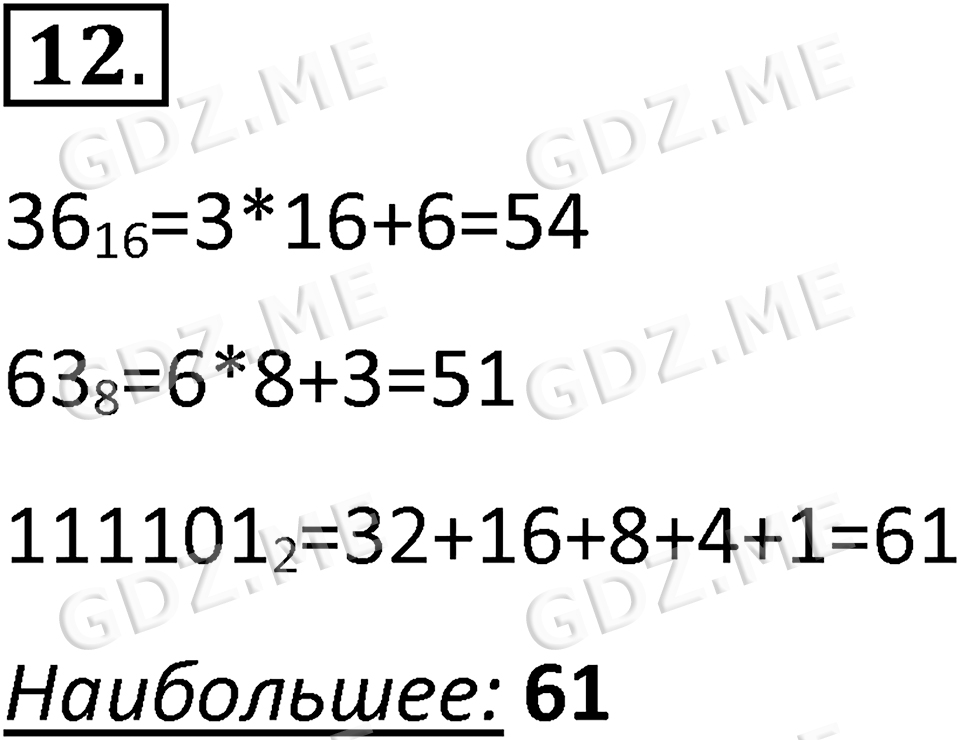 Подробный вариант решения из решебника (ГДЗ): Номер номер 12 (НОМЕРА РЕШЕНИЙ. §1.3. Системы счисления, родственные двоичной. Страницы 28-30. Вопросы и задания) по предмету 8 класс, за , авторы учебника Босова.