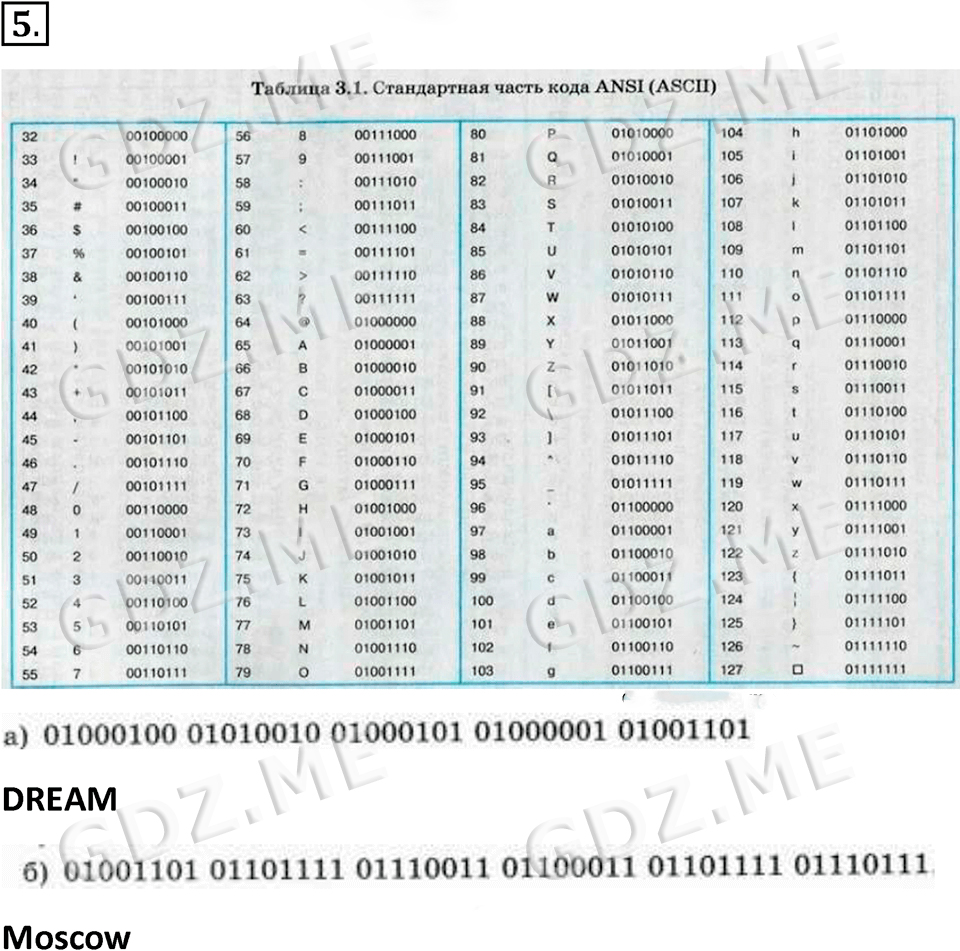 Подробный вариант решения из решебника (ГДЗ): Номер номер 5 (НОМЕРА РЕШЕНИЙ. §1.4. Системы счисления и представление информации в компьютере. Страницы 34-35. Вопросы и задания) по предмету 8 класс, за , авторы учебника Босова.