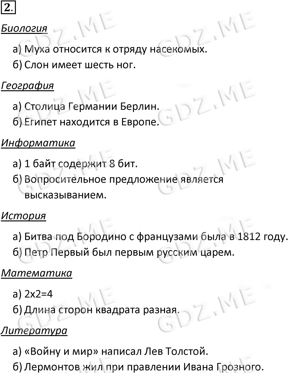 Подробный вариант решения из решебника (ГДЗ): Номер номер 2 (НОМЕРА РЕШЕНИЙ. §2.1. Высказывания и логические связки. Страницы 45-46. Вопросы и задания) по предмету 8 класс, за , авторы учебника Босова.