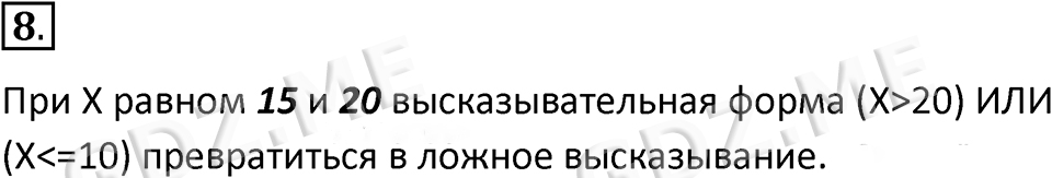 Подробный вариант решения из решебника (ГДЗ): Номер номер 8 (НОМЕРА РЕШЕНИЙ. §2.1. Высказывания и логические связки. Страницы 45-46. Вопросы и задания) по предмету 8 класс, за , авторы учебника Босова.