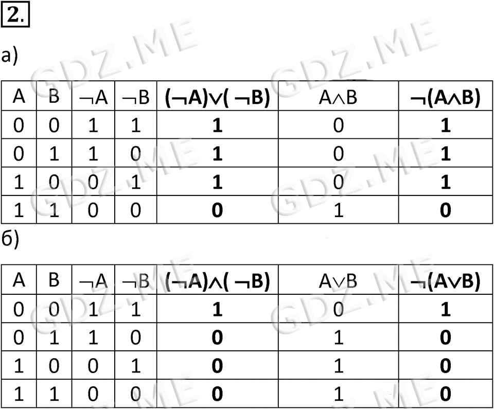 Подробный вариант решения из решебника (ГДЗ): Номер номер 2 (НОМЕРА РЕШЕНИЙ. §2.3. Таблицы истинности логических выражений. Страница 62. Вопросы и задания) по предмету 8 класс, за , авторы учебника Босова.