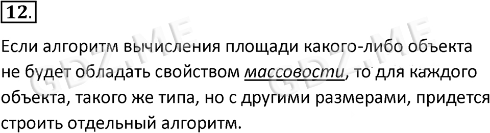 Подробный вариант решения из решебника (ГДЗ): Номер номер 12 (НОМЕРА РЕШЕНИЙ. §3.1. Алгоритмы и исполнители. Страницы 83-86. Вопросы и задания) по предмету 8 класс, за , авторы учебника Босова.