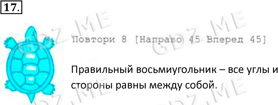 Подробный вариант решения из решебника (ГДЗ): Номер номер 17 (НОМЕРА РЕШЕНИЙ. §3.1. Алгоритмы и исполнители. Страницы 83-86. Вопросы и задания) по предмету 8 класс, за , авторы учебника Босова.
