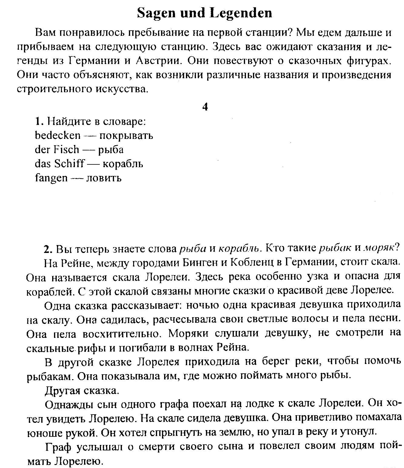 Подробный вариант решения из решебника (ГДЗ): Задание номер 4^1 (Lesebuch Sagen und Legenden) по предмету Немецкий язык, за 8 класс, авторы учебника Бим И.Л., Садомова Л.В..