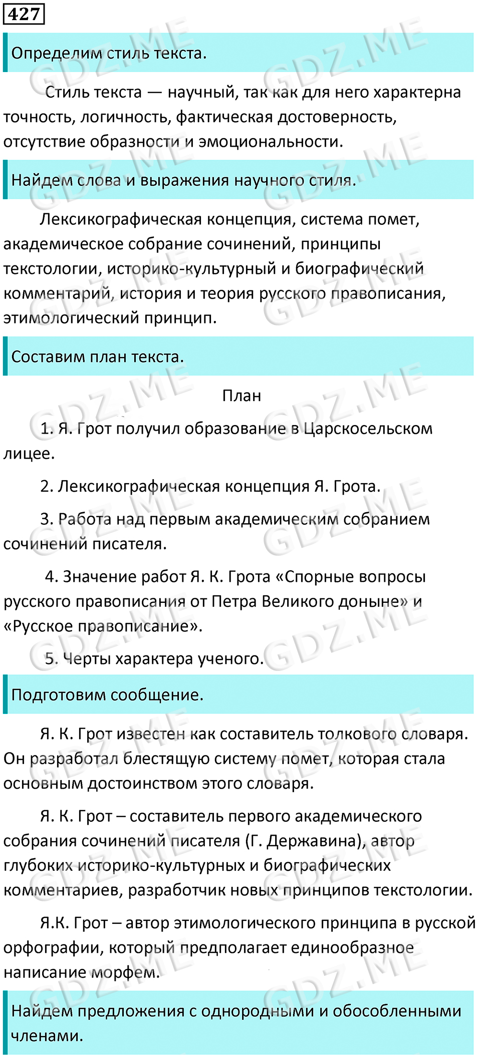 Подробный вариант решения из решебника (ГДЗ): Номер номер 427.1 (НОМЕРА РЕШЕНИЙ. Упражнения с 1 по 535) по предмету Русский язык, за 8 класс, авторы учебника Бархударов, Крючков, Максимов.