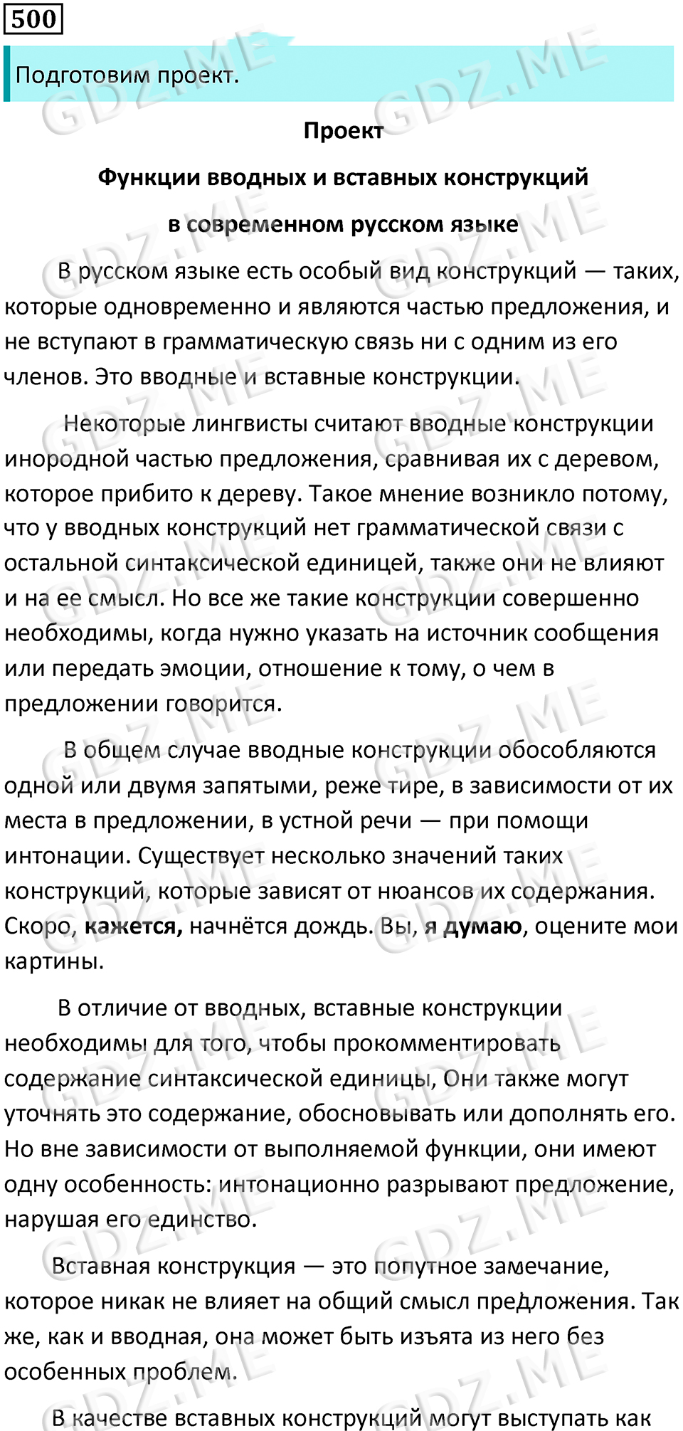 Подробный вариант решения из решебника (ГДЗ): Номер номер 500.1 (НОМЕРА РЕШЕНИЙ. Упражнения с 1 по 535) по предмету Русский язык, за 8 класс, авторы учебника Бархударов, Крючков, Максимов.