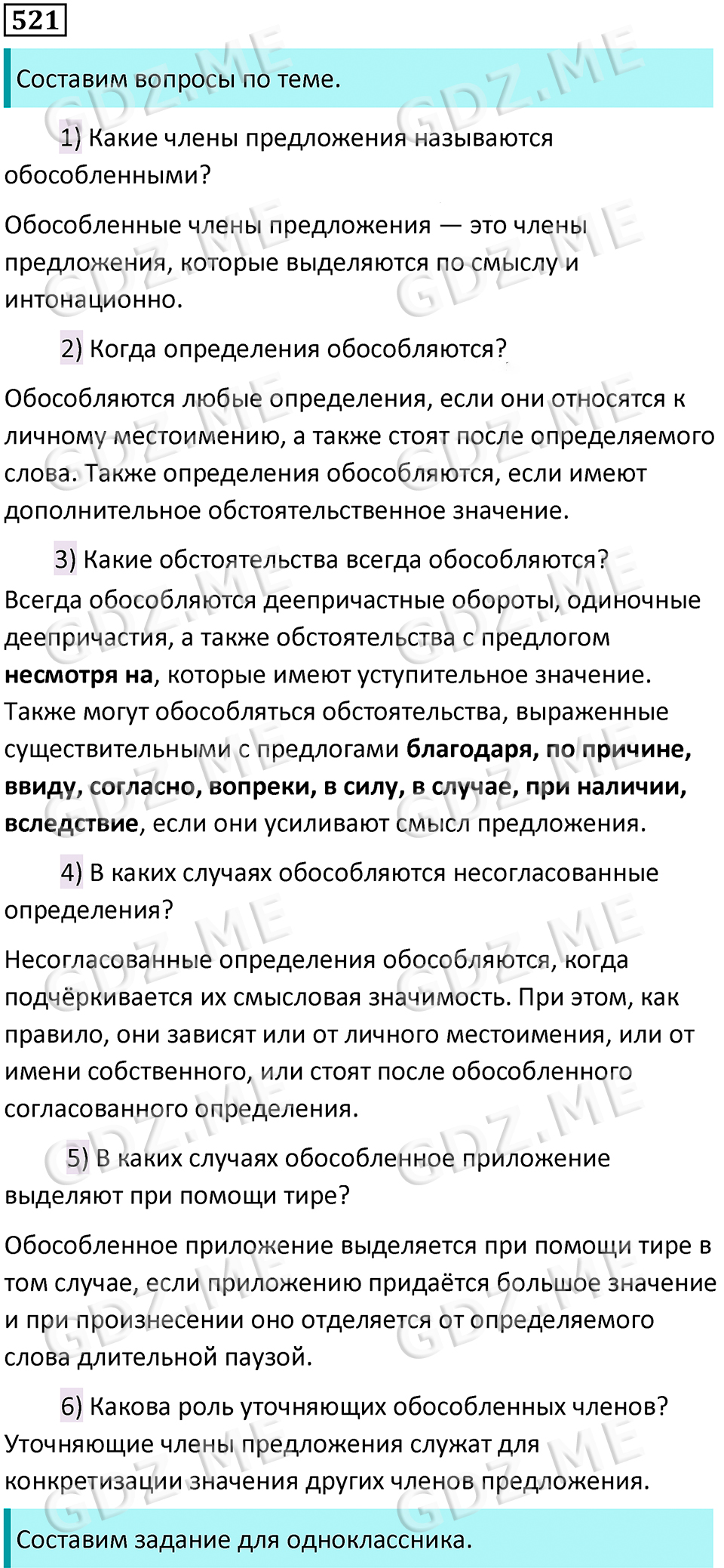 Подробный вариант решения из решебника (ГДЗ): Номер номер 521.1 (НОМЕРА РЕШЕНИЙ. Упражнения с 1 по 535) по предмету Русский язык, за 8 класс, авторы учебника Бархударов, Крючков, Максимов.