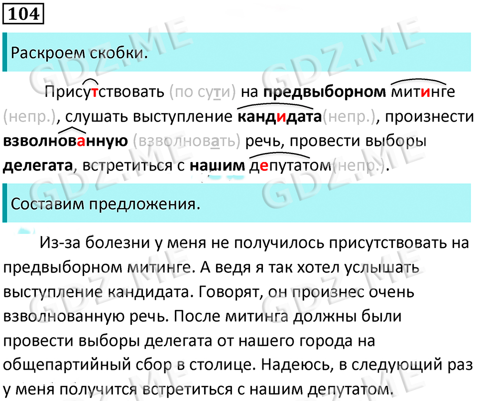 Подробный вариант решения из решебника (ГДЗ): Номер номер 104 (НОМЕРА РЕШЕНИЙ. Упражнения с 1 по 535) по предмету Русский язык, за 8 класс, авторы учебника Бархударов, Крючков, Максимов.