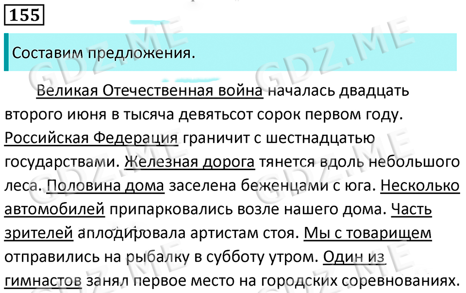 Подробный вариант решения из решебника (ГДЗ): Номер номер 155 (НОМЕРА РЕШЕНИЙ. Упражнения с 1 по 535) по предмету Русский язык, за 8 класс, авторы учебника Бархударов, Крючков, Максимов.