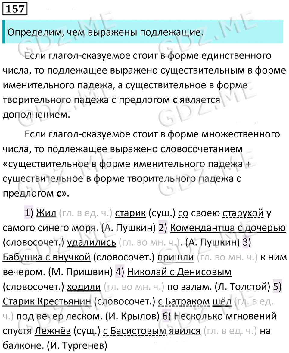 Подробный вариант решения из решебника (ГДЗ): Номер номер 157 (НОМЕРА РЕШЕНИЙ. Упражнения с 1 по 535) по предмету Русский язык, за 8 класс, авторы учебника Бархударов, Крючков, Максимов.