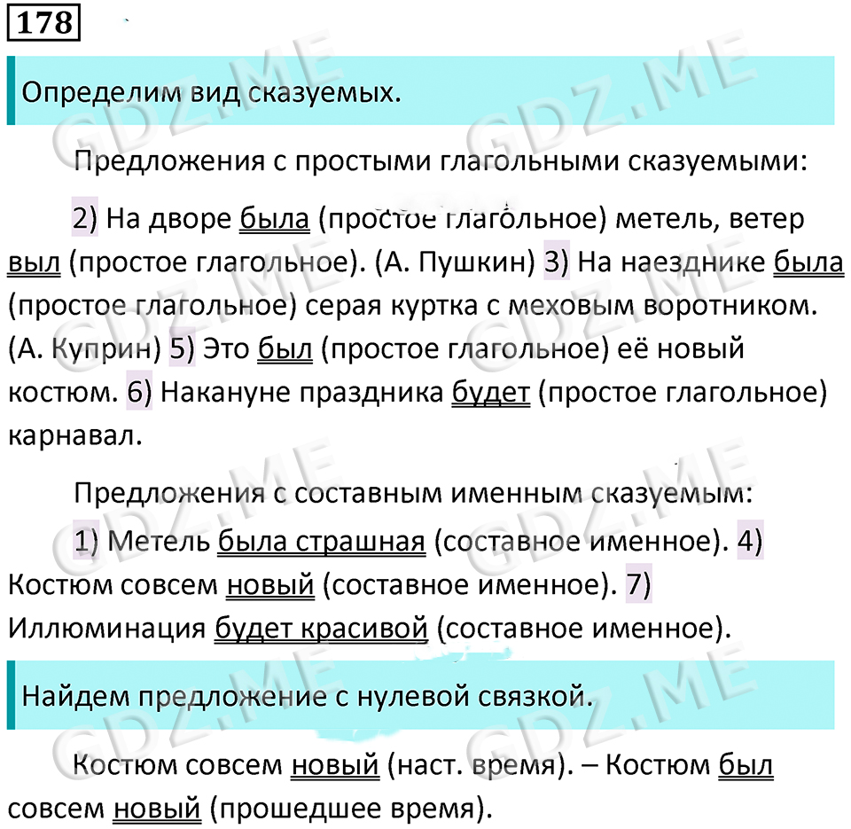 Подробный вариант решения из решебника (ГДЗ): Номер номер 178 (НОМЕРА РЕШЕНИЙ. Упражнения с 1 по 535) по предмету Русский язык, за 8 класс, авторы учебника Бархударов, Крючков, Максимов.