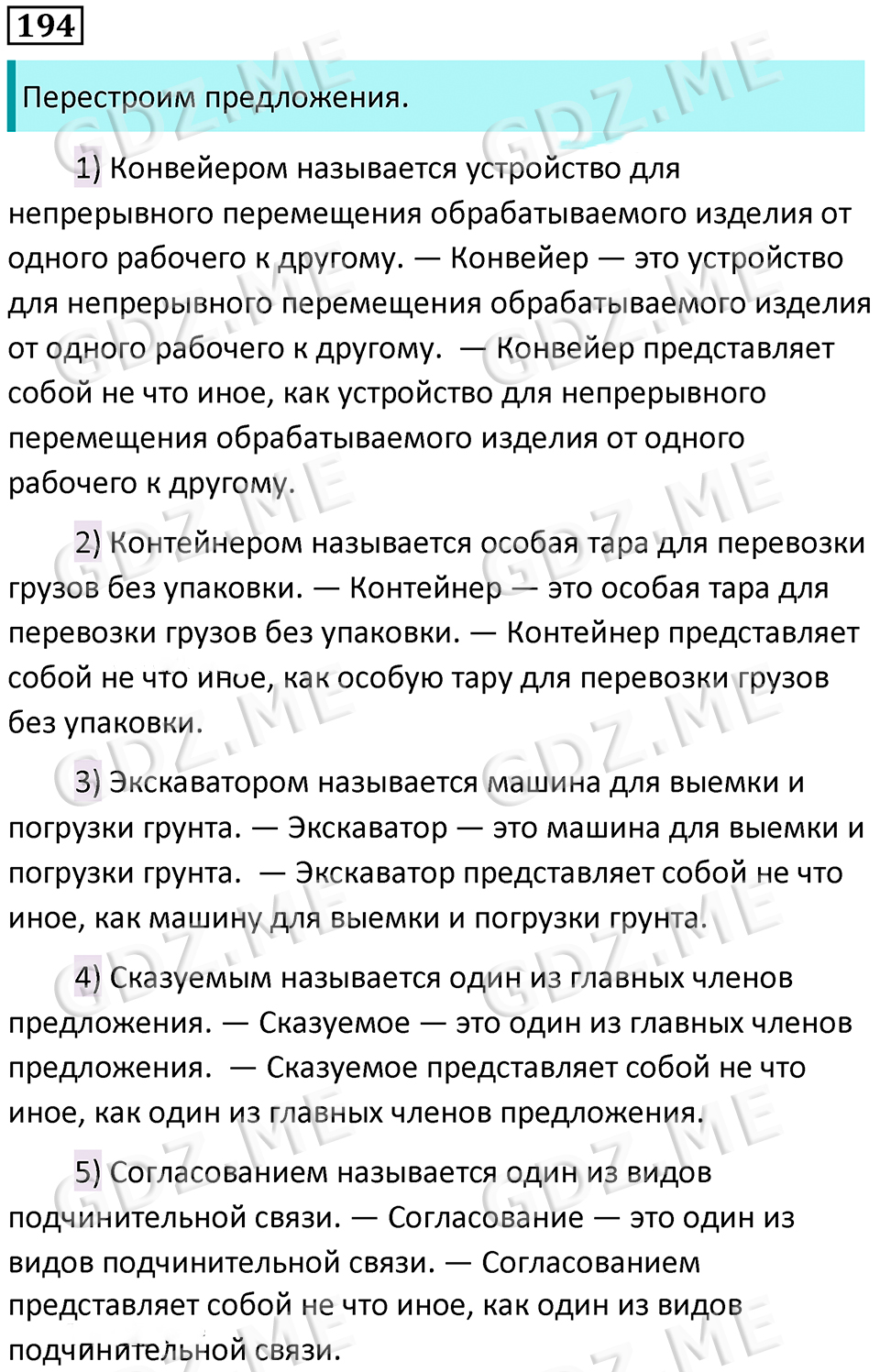 Подробный вариант решения из решебника (ГДЗ): Номер номер 194 (НОМЕРА РЕШЕНИЙ. Упражнения с 1 по 535) по предмету Русский язык, за 8 класс, авторы учебника Бархударов, Крючков, Максимов.