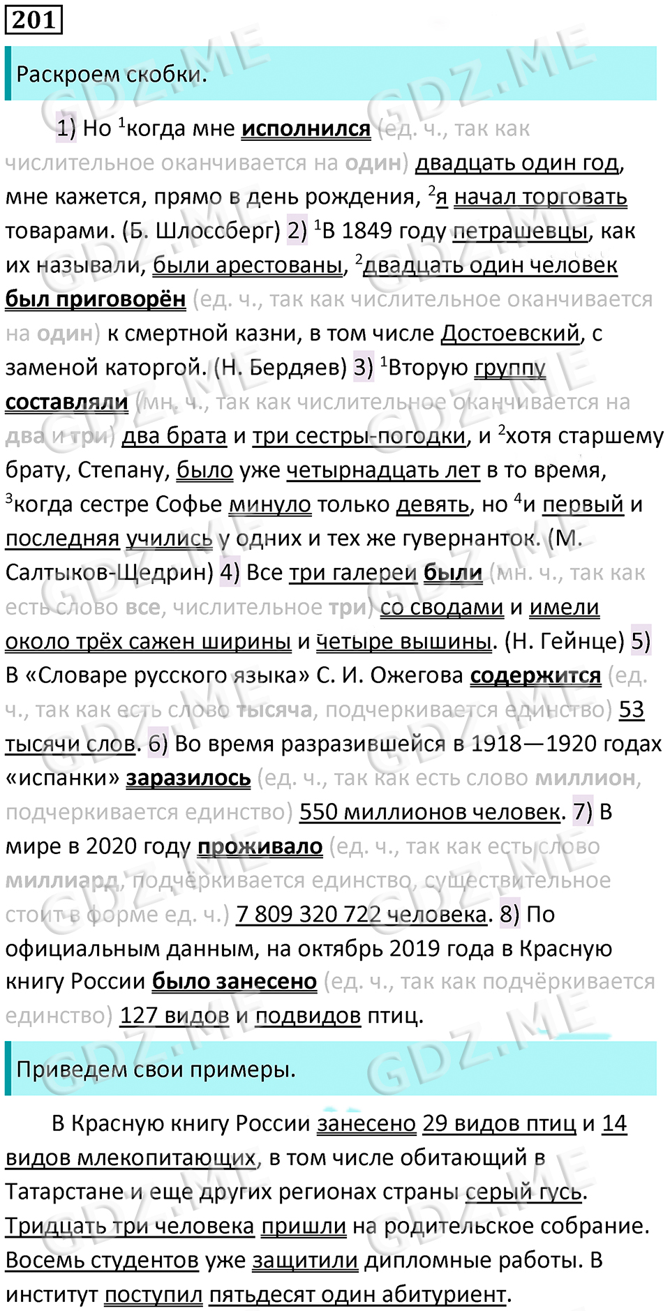 Подробный вариант решения из решебника (ГДЗ): Номер номер 201 (НОМЕРА РЕШЕНИЙ. Упражнения с 1 по 535) по предмету Русский язык, за 8 класс, авторы учебника Бархударов, Крючков, Максимов.