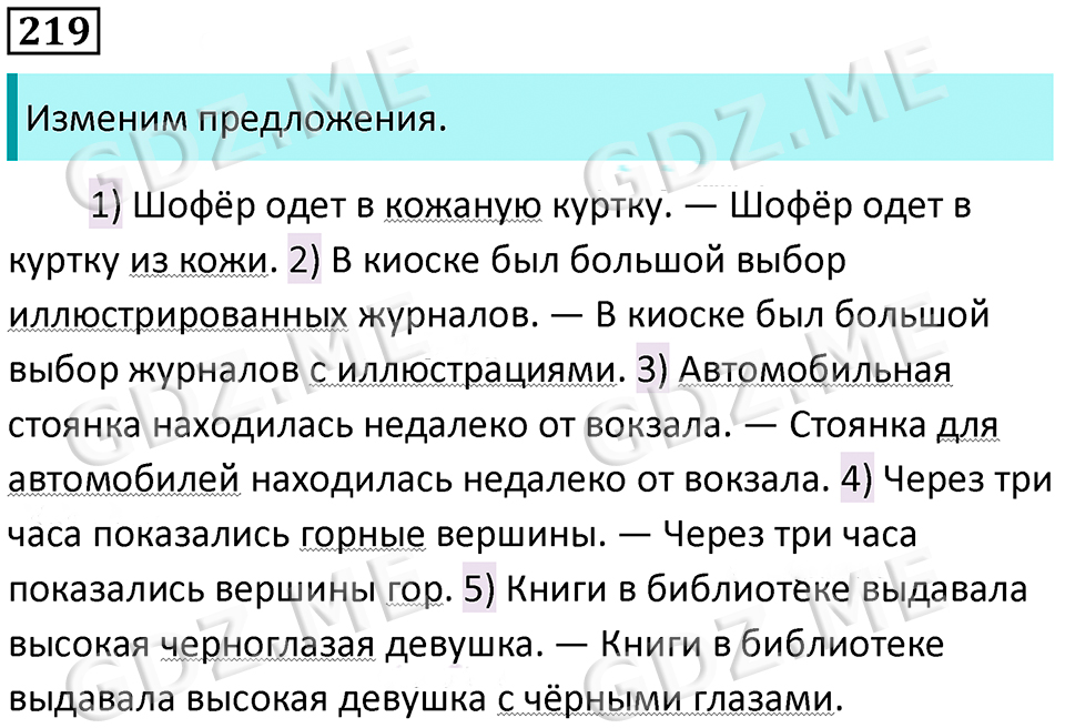 Подробный вариант решения из решебника (ГДЗ): Номер номер 219 (НОМЕРА РЕШЕНИЙ. Упражнения с 1 по 535) по предмету Русский язык, за 8 класс, авторы учебника Бархударов, Крючков, Максимов.