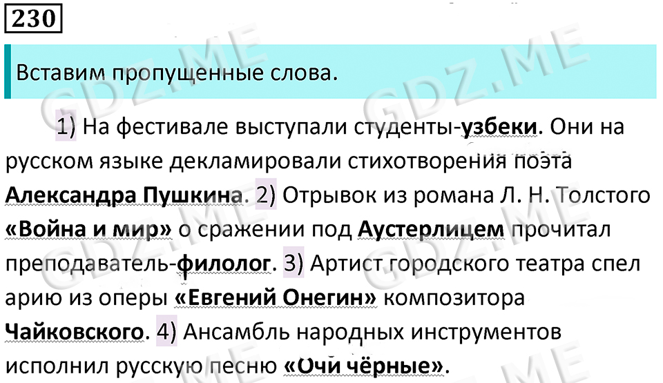Подробный вариант решения из решебника (ГДЗ): Номер номер 230 (НОМЕРА РЕШЕНИЙ. Упражнения с 1 по 535) по предмету Русский язык, за 8 класс, авторы учебника Бархударов, Крючков, Максимов.