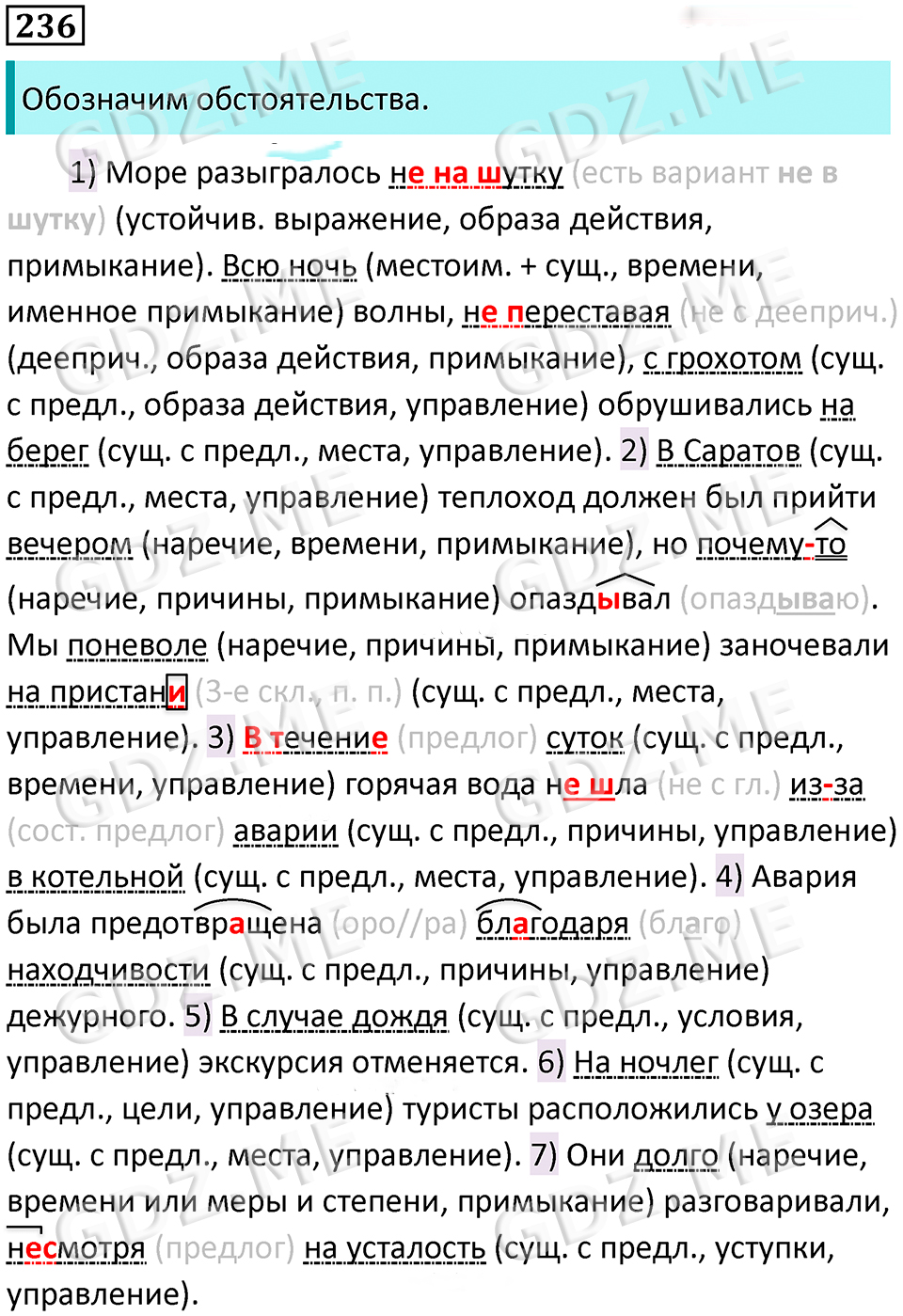 Подробный вариант решения из решебника (ГДЗ): Номер номер 236 (НОМЕРА РЕШЕНИЙ. Упражнения с 1 по 535) по предмету Русский язык, за 8 класс, авторы учебника Бархударов, Крючков, Максимов.