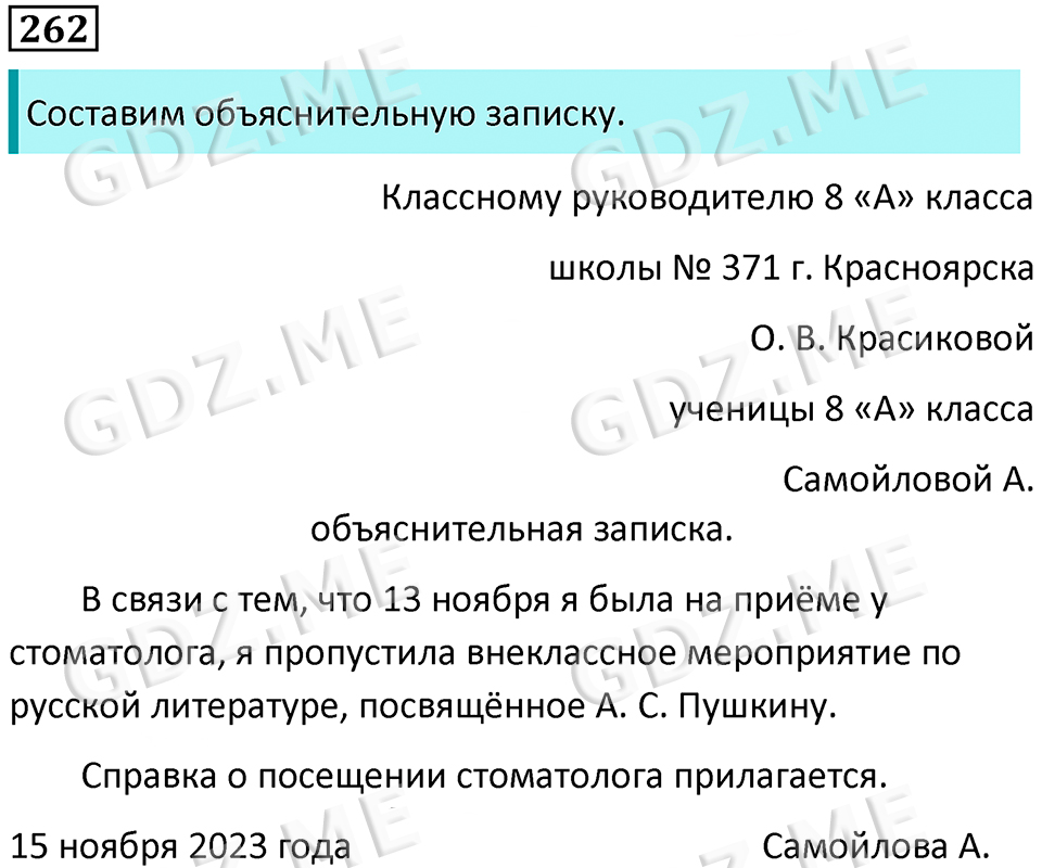 Подробный вариант решения из решебника (ГДЗ): Номер номер 262 (НОМЕРА РЕШЕНИЙ. Упражнения с 1 по 535) по предмету Русский язык, за 8 класс, авторы учебника Бархударов, Крючков, Максимов.