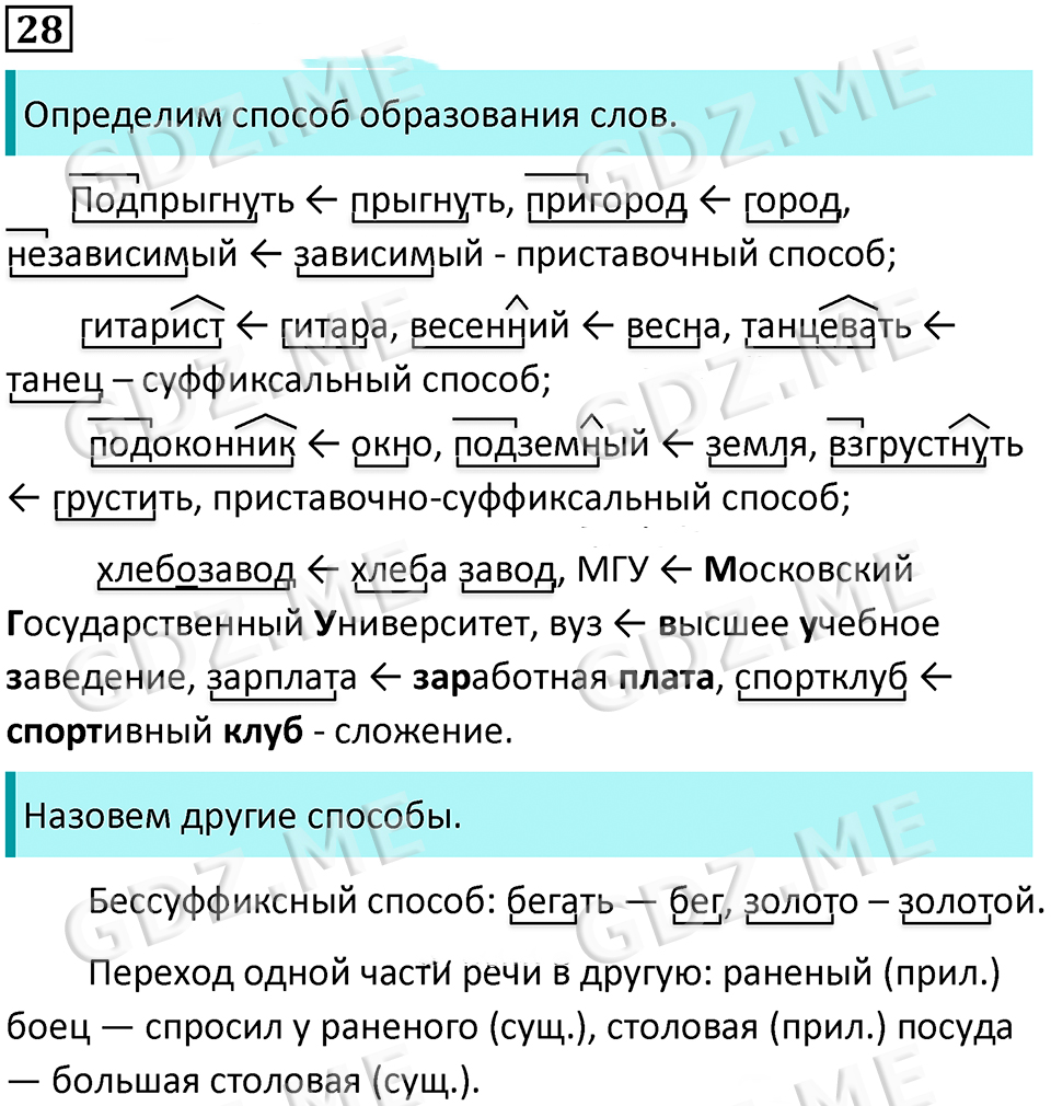 Подробный вариант решения из решебника (ГДЗ): Номер номер 28 (НОМЕРА РЕШЕНИЙ. Упражнения с 1 по 535) по предмету Русский язык, за 8 класс, авторы учебника Бархударов, Крючков, Максимов.
