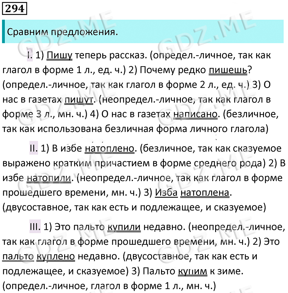 Подробный вариант решения из решебника (ГДЗ): Номер номер 294 (НОМЕРА РЕШЕНИЙ. Упражнения с 1 по 535) по предмету Русский язык, за 8 класс, авторы учебника Бархударов, Крючков, Максимов.