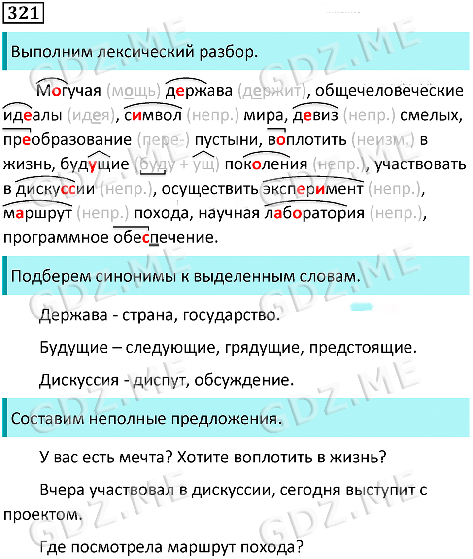Подробный вариант решения из решебника (ГДЗ): Номер номер 321 (НОМЕРА РЕШЕНИЙ. Упражнения с 1 по 535) по предмету Русский язык, за 8 класс, авторы учебника Бархударов, Крючков, Максимов.