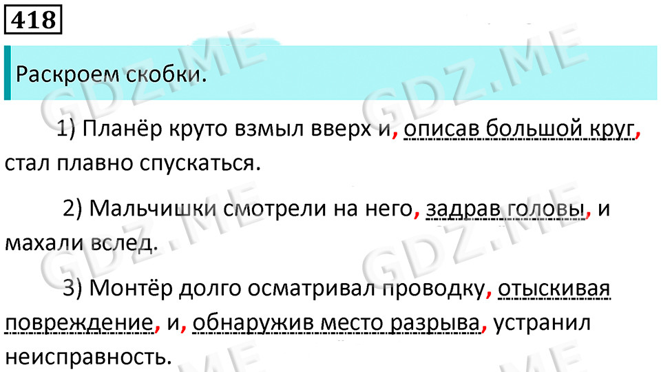Подробный вариант решения из решебника (ГДЗ): Номер номер 418 (НОМЕРА РЕШЕНИЙ. Упражнения с 1 по 535) по предмету Русский язык, за 8 класс, авторы учебника Бархударов, Крючков, Максимов.