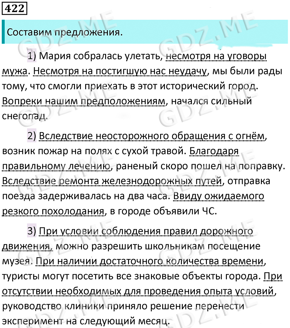 Подробный вариант решения из решебника (ГДЗ): Номер номер 422 (НОМЕРА РЕШЕНИЙ. Упражнения с 1 по 535) по предмету Русский язык, за 8 класс, авторы учебника Бархударов, Крючков, Максимов.