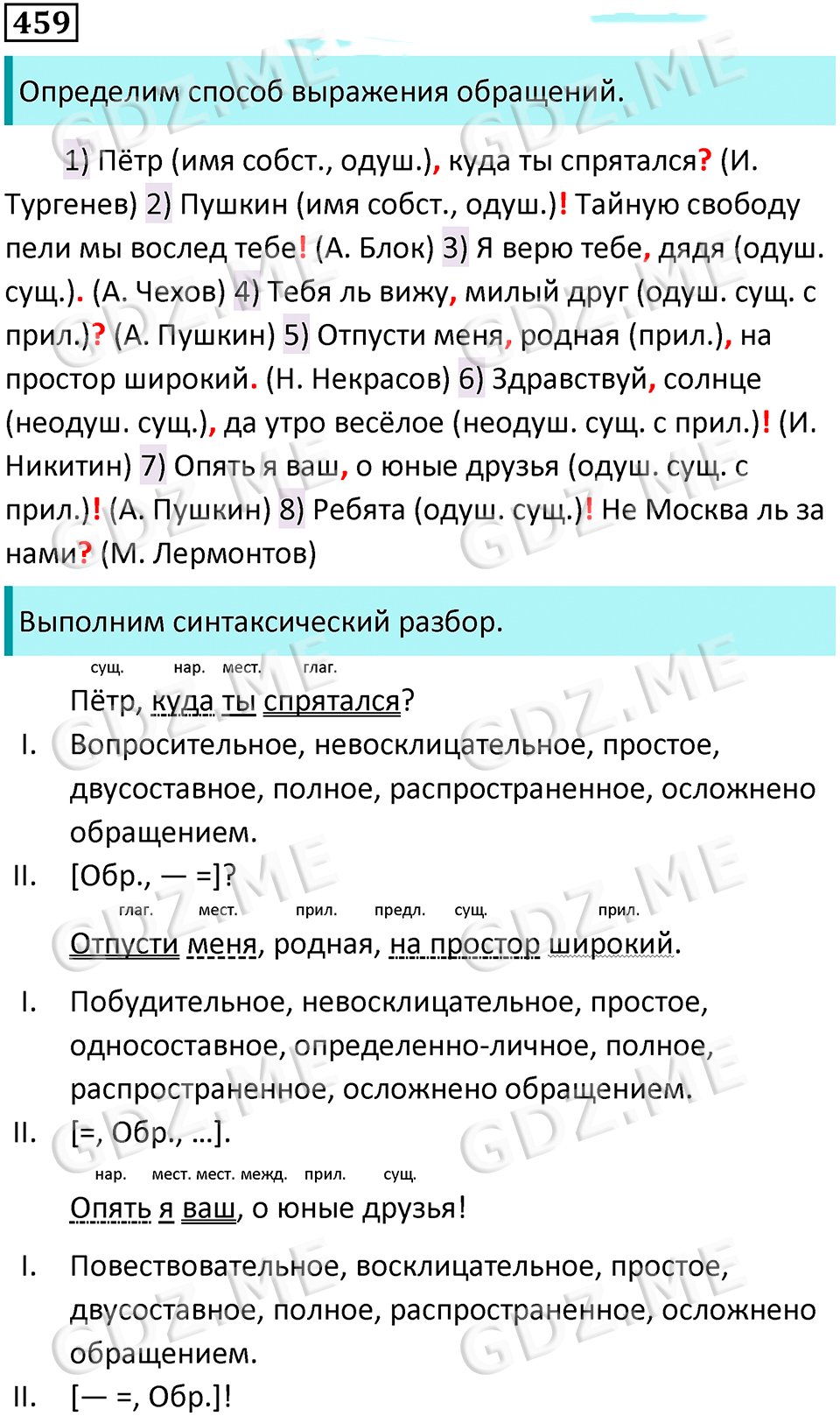 Подробный вариант решения из решебника (ГДЗ): Номер номер 459 (НОМЕРА РЕШЕНИЙ. Упражнения с 1 по 535) по предмету Русский язык, за 8 класс, авторы учебника Бархударов, Крючков, Максимов.