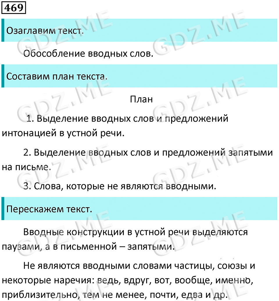 Подробный вариант решения из решебника (ГДЗ): Номер номер 469 (НОМЕРА РЕШЕНИЙ. Упражнения с 1 по 535) по предмету Русский язык, за 8 класс, авторы учебника Бархударов, Крючков, Максимов.