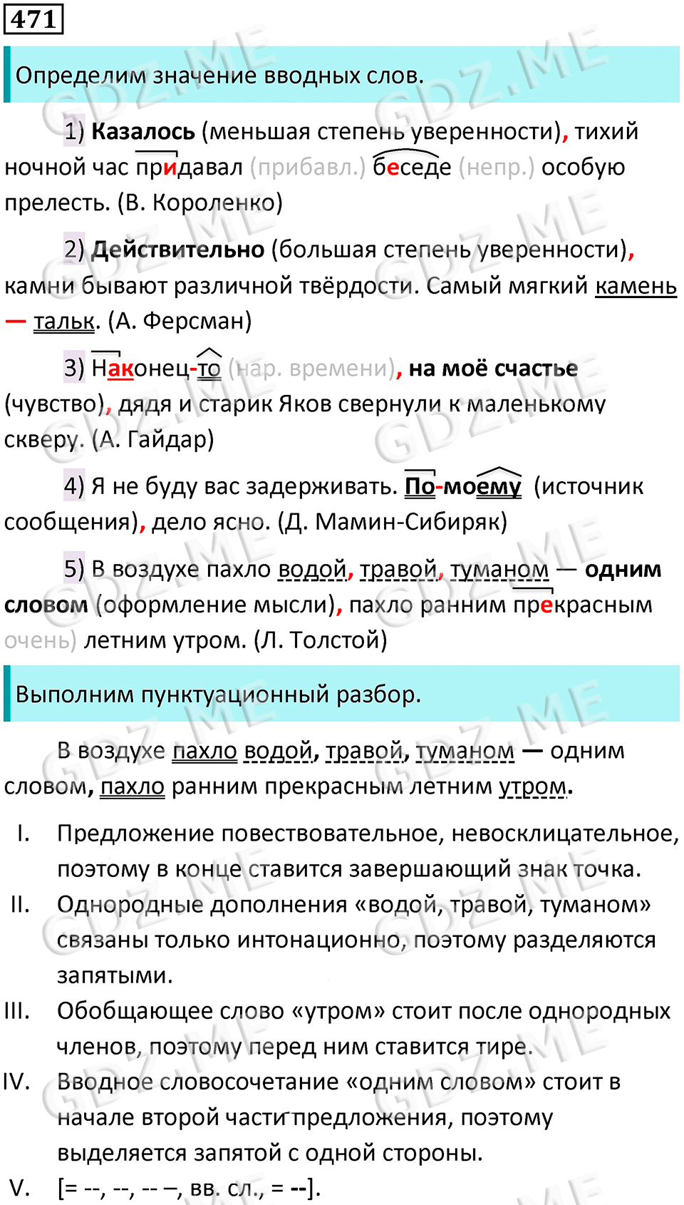 Подробный вариант решения из решебника (ГДЗ): Номер номер 471 (НОМЕРА РЕШЕНИЙ. Упражнения с 1 по 535) по предмету Русский язык, за 8 класс, авторы учебника Бархударов, Крючков, Максимов.