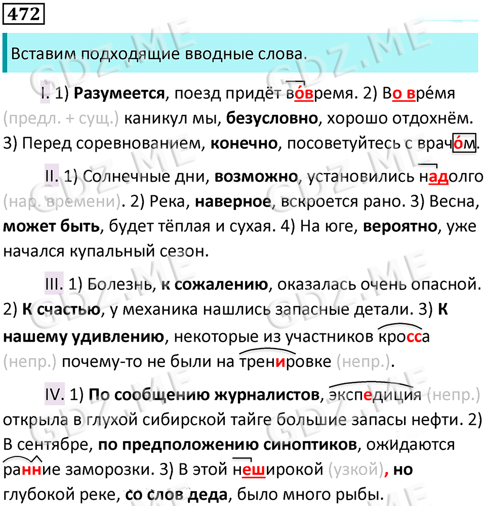 Подробный вариант решения из решебника (ГДЗ): Номер номер 472 (НОМЕРА РЕШЕНИЙ. Упражнения с 1 по 535) по предмету Русский язык, за 8 класс, авторы учебника Бархударов, Крючков, Максимов.