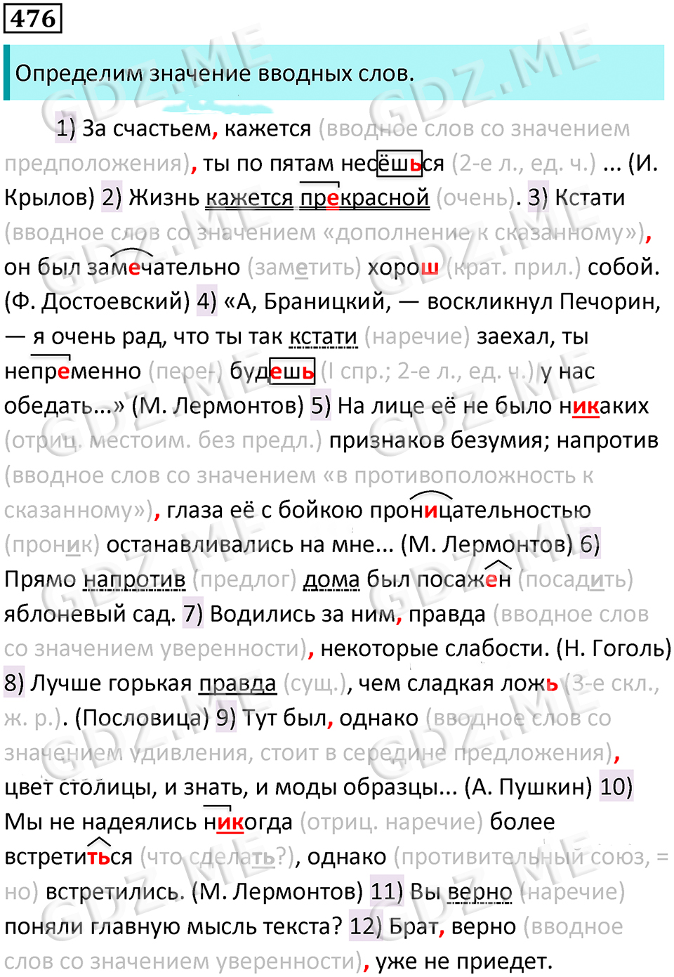 Подробный вариант решения из решебника (ГДЗ): Номер номер 476 (НОМЕРА РЕШЕНИЙ. Упражнения с 1 по 535) по предмету Русский язык, за 8 класс, авторы учебника Бархударов, Крючков, Максимов.